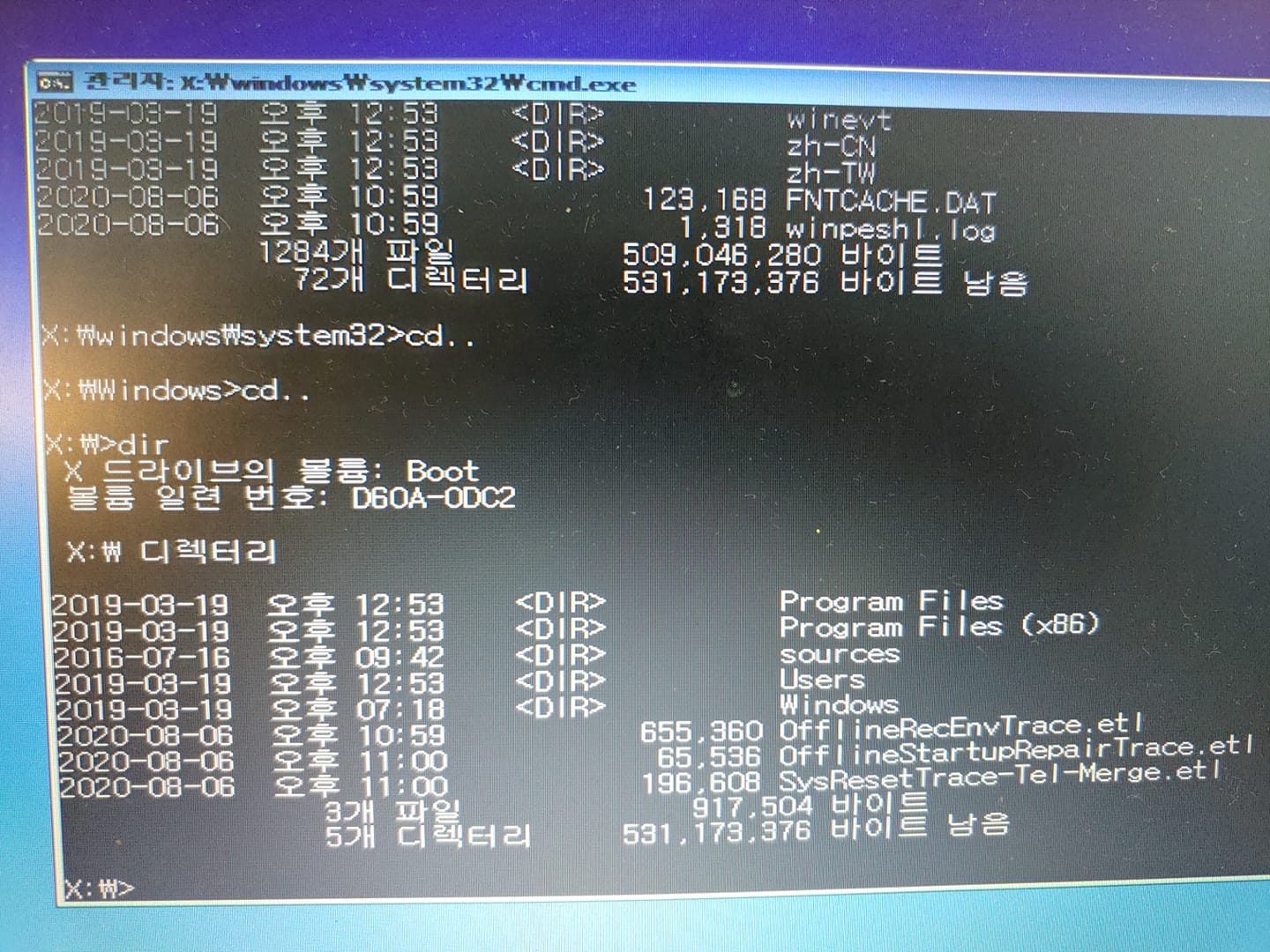 응급조치로 살려보겠다고 명령 프롬프터까지 띄워서 시도해봤지만 하드디스크가 나간 상태여서 더 이상의 치료는 무의미했다.