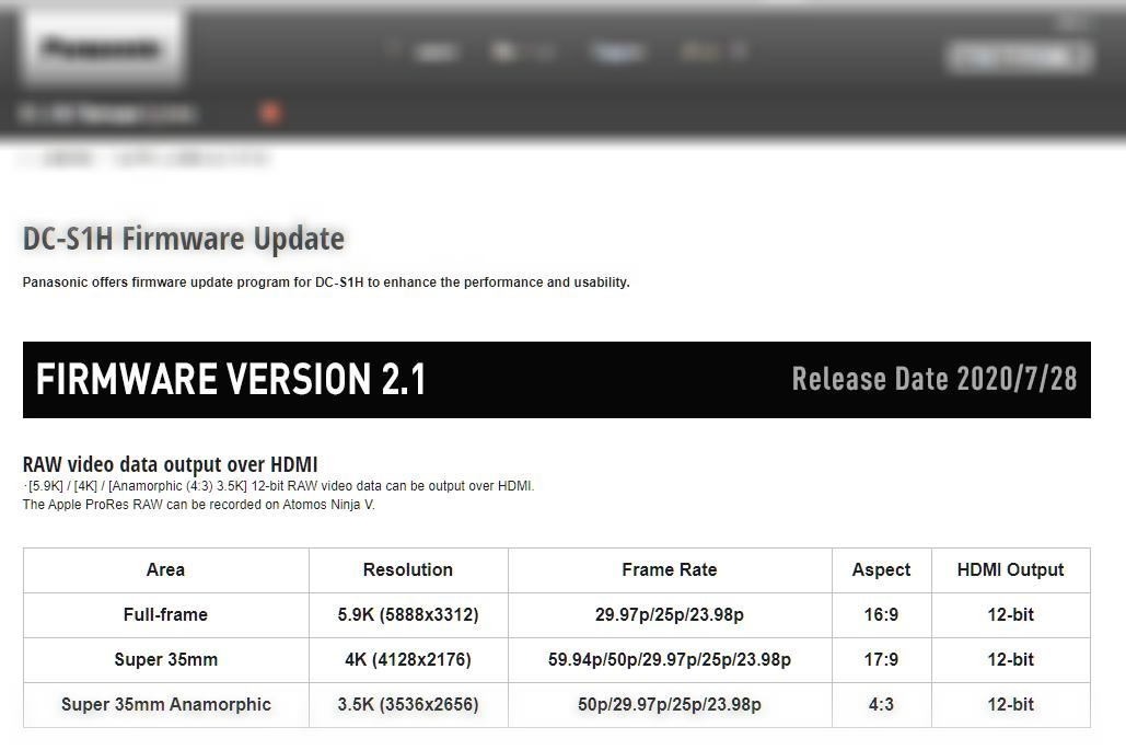 파나소닉이 드디어! Prores RAW 녹화를 위한 출력지원 펌웨어를 발표했습니다.