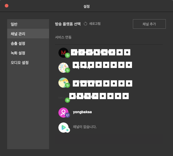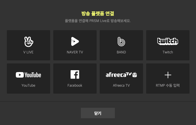 최대 동시송출 채널이 몇 개까지 인지는 모르겠습니다만 일단 경험자들의 말을 보니 5개~6개 정도까지는 동시 송출이 가능한 것 같습니다. 프리즘 라이브 스튜디오 프로그램이 하드웨어 자원을 많이 잡아먹지 않는다는 이야기도 되는군요.
