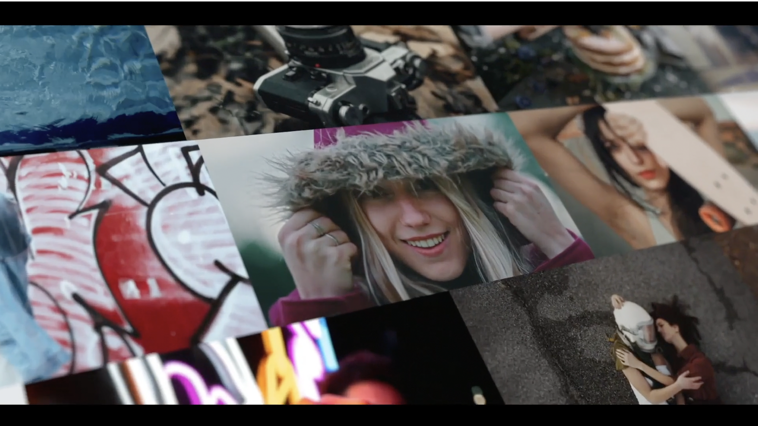 이미지 슬라이드쇼로 활용할 수 있는 템플릿. 영상 특성에 맞게 다양한 방식의 디자인을 포함하고 있어서 활용도가 높아 보인다.